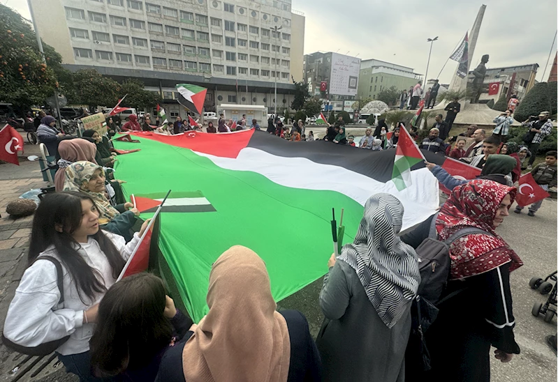 Merkez Seyhan ilçesi 5 Ocak Meydanı'nda bir araya gelen grup, Türk ve Filistin bayrakları taşıdı.