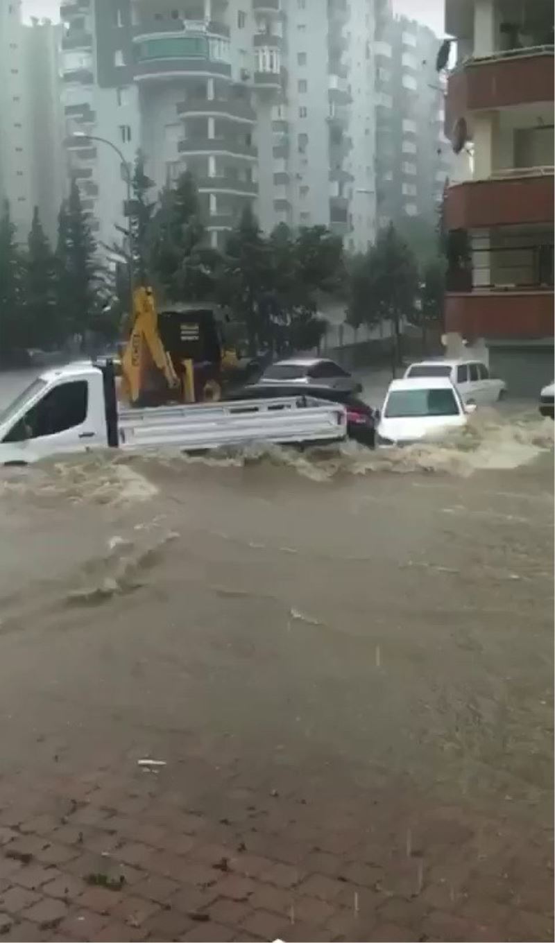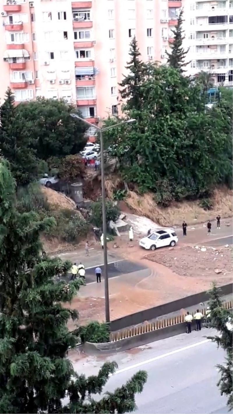 Adana’da kuvvetli yağışın neden olduğu selde araçlar sürüklendi, otoyol kenarında toprak kayması meydana geldi.