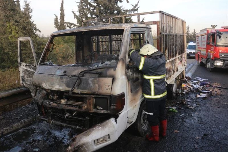 ADANA (AA) - Adana'nin merkez Sariçam ilçesinde seyir halindeyken alev alan kagit yüklü kamyonet, kullanilamaz hale geldi.