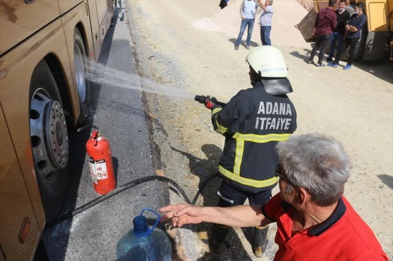 ADANA (AA) - Adana'da seyir halindeki otobüsün lastiginde çikan yangin büyümeden söndürüldü.