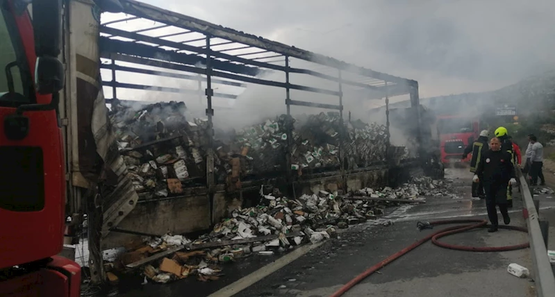 M.S.A'nın kullandığı 46 N 3815 plakalı bebek bezi yüklü tır, Adana-Pozantı Otoyolu'nun Damlama mevkisinde henüz belirlenemeyen nedenle alev aldı.