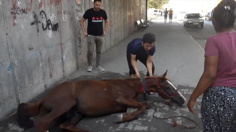 ADANA (AA) - Adana'da seyyar araba çeken at, sicak hava ve yorgunluk nedeniyle bayildi.