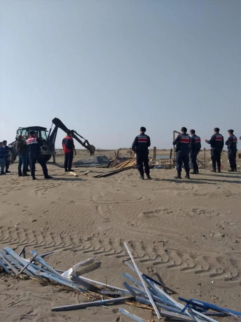 ADANA (AA) - Adana'nın Yumurtalık ilçesinde sit alanı içerisindeki 63 baraka yıkıldı.