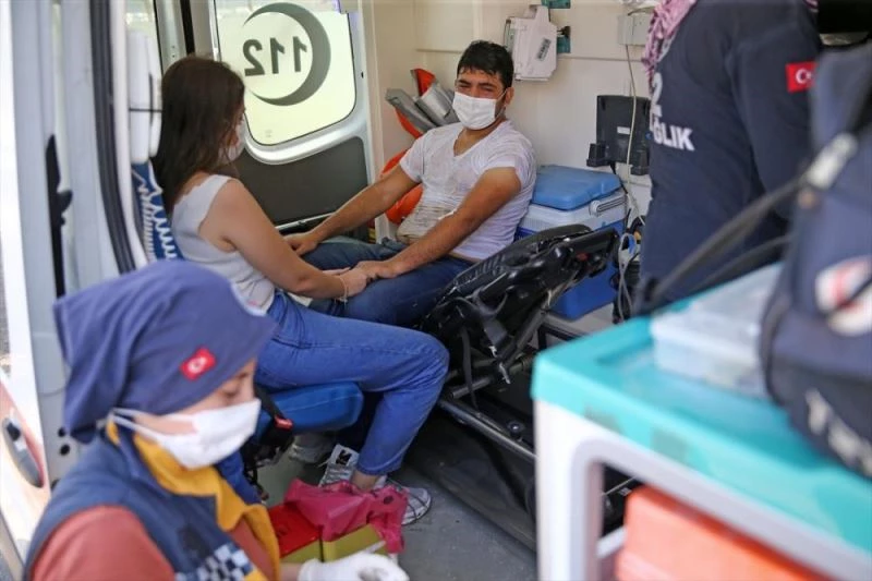 İhbar üzerine olay yerine sevk edilen ambulansa alınan Bacaksız ve Hanım'a burada ilk müdahale yapıldı.