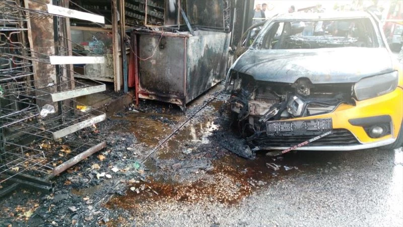 K.T, dükkanda olduğu sırada henüz belirlenemeyen nedenle aracı yanmaya başladı.