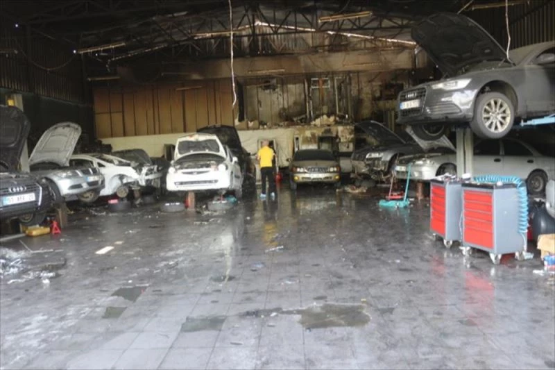 Olay yerine gelen itfaiye ekiplerinin müdahalesiyle söndürülen yangında tamir için getirilen 3 otomobilde hasar oluştu.