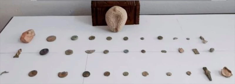Operasyon düzenleyen ekipler, şüphelilerin otomobillerinde Roma ve Bizans dönemine ait olduğu değerlendirilen 23 sikke, kandil, 10 taş ve metal obje ele geçirdi.