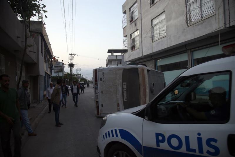 Alinan bilgiye göre, Ibrahim A. idaresindeki 80 LC 146 plakali tarim isçilerini tasiyan midibüs, merkez Yüregir ilçesi 19 Mayis Mahallesi Huzur Caddesi'nde Hasim S'nin kullandigi 01 AHN 44 plakali içerisinde tarim isçileri bulunan baska bir midibüsle çarpistiktan sonra devrildi.