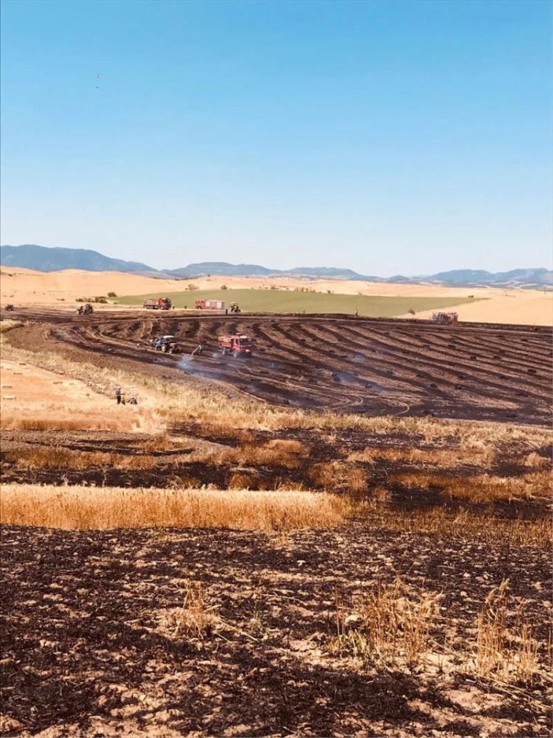 Kısa sürede büyüyen yangın, tarlanın ekili kısmına da sıçradı.