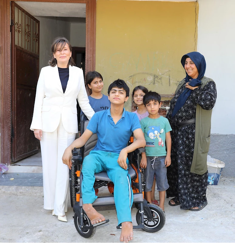 ADANA - Adana'da tekerlekli sandalyesi çalınan engelli çocuğa, AK Parti İl Başkanlığınca akülü tekerlekli sandalye hediye edildi.