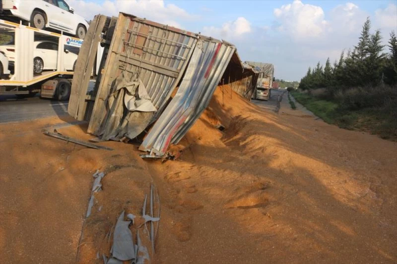 Merkez Sarıçam ilçesi Tarsus-Adana-Gaziantep (TAG) Otoyolunda Furkan Atak idaresindeki 02 ABB 786 plakalı yem yüklü tır, sürücüsünün direksiyon hakimiyetini kaybetmesi sonucu devrildi.
