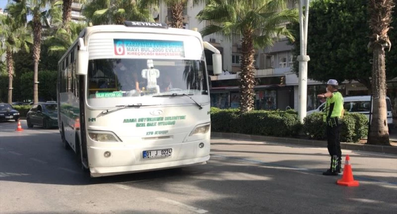 ADANA (AA) - Adana'da polis ekiplerince, yeni tip koronavirüs (Kovid-19) tedbirleri kapsaminda toplu tasima araçlarinda maske ve sosyal mesafe denetimi gerçeklestirildi.