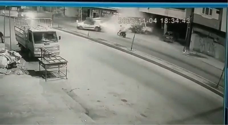 Adana’da kontrolünü kaybeden kamyonet sürücüsü park halindeki başka bir kamyonete çarptı. Bu sırada motosiklet sürücüsü ise şans eseri kazayı yara almadan atlattı.