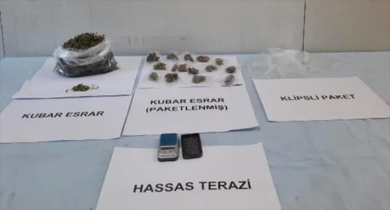 Adreslerde 1 kilo 689 gram esrar, 28 gram sentetik uyuşturucu, 3 uyuşturucu hap ve 12 kök Hint keneviri ele geçirdi.