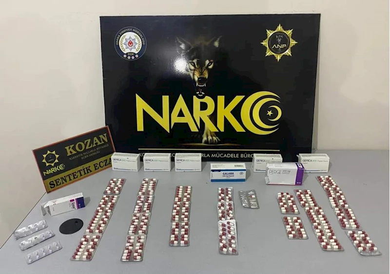 Ekipler, araçta yapılan aramada 222, şüphelilerin ikametlerinde 118 sentetik ecza ele geçirdi.