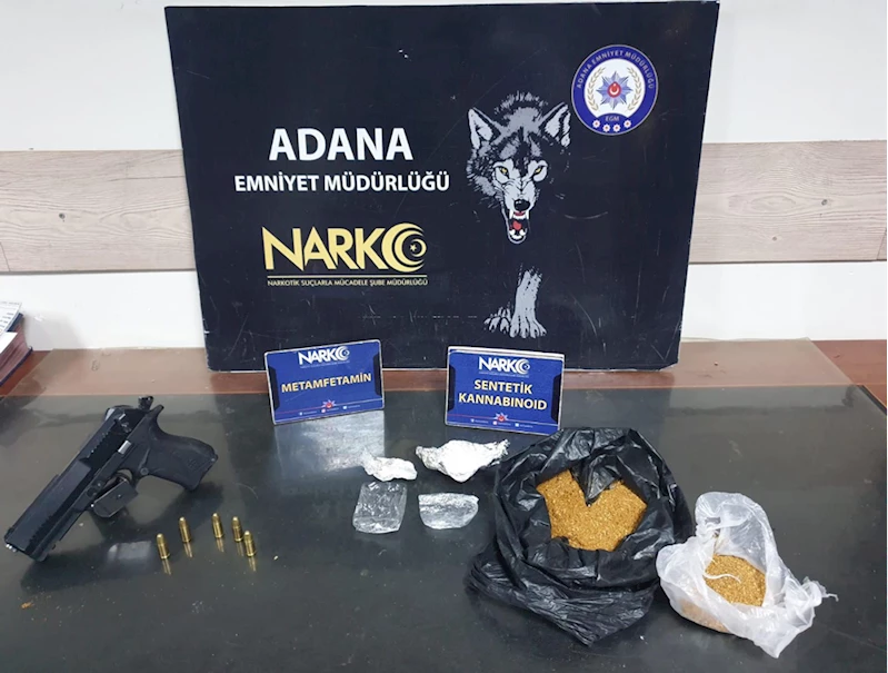 Adreslerde yapılan aramada, çeşitli miktarlarda uyuşturucu, 1 ruhsatsız tabanca ile bu silaha ait 5 mermi ele geçirildi.
