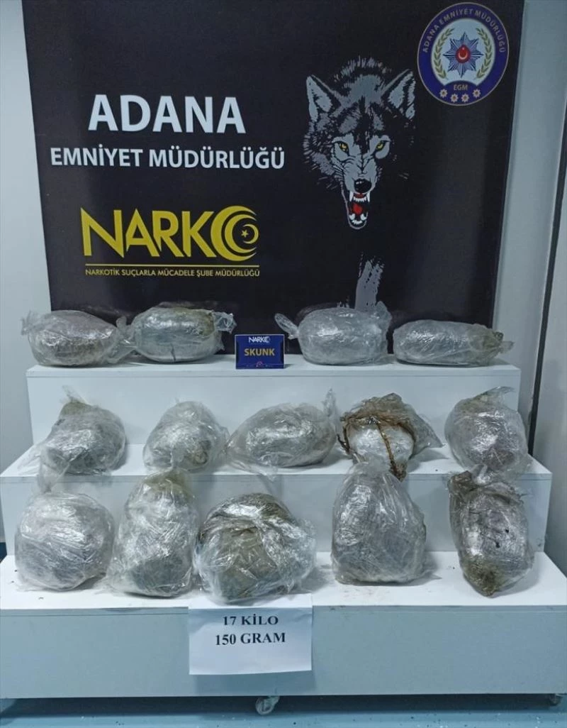 ADANA - Adana'da düzenlenen operasyonda 17 kilo 150 gram esrar ve 560 uyuşturucu hap ele geçirildi, yakalanan iki şüpheliden biri tutuklandı.
