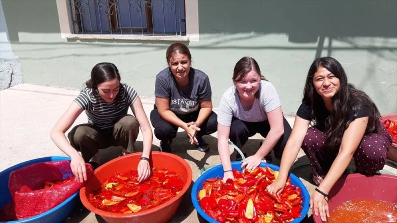 Katılımcıların, köy yaşamının inceliklerine ilgi gösterdiğini vurgulayan Karan, "Katılımcılar, bizlerle birlikte inek sütü sağıyor, salça için biber temizliyor, bulgur kaynatıyorlar. Turistler, köy hayatını çok beğeniyor. Bizler de hem ilçemizi hem kültürümüzü hem de dilimizi tanıtıyoruz." diye konuştu.