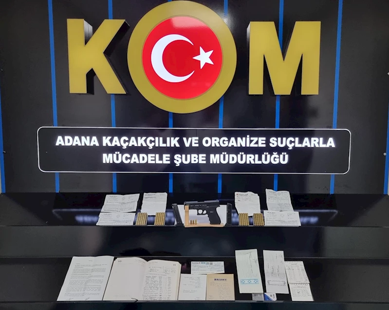 Aramalarda ruhsatsız tabanca, 203 mermi, 1 milyon 750 bin lira tutarında çek, alacak notlarının bulunduğu defter ve farklı kişilere ait 2 kredi kartı ele geçirildi.