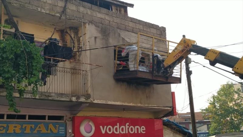 Tatar'in asiri kilosundan dolayi evden çikarilamayan cesedi, ekipler tarafindan vinç yardimiyla pencereden çikartildi.