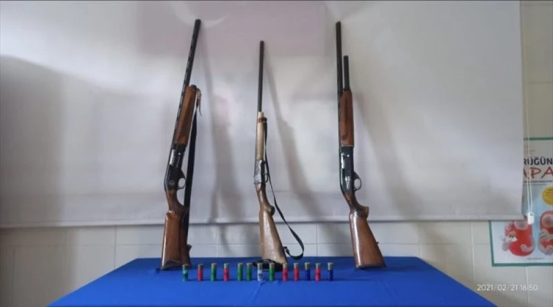 Çalışma kapsamında yasa dışı avlandıkları belirlenen 3 kişi hakkında Kara Avcılığı Kanunu'na muhalefetten ve sokağa çıkma kısıtlamasını ihlalden işlem yapıldı, 3 tüfeğe el konuldu.