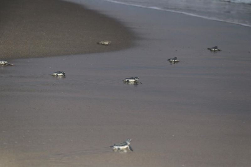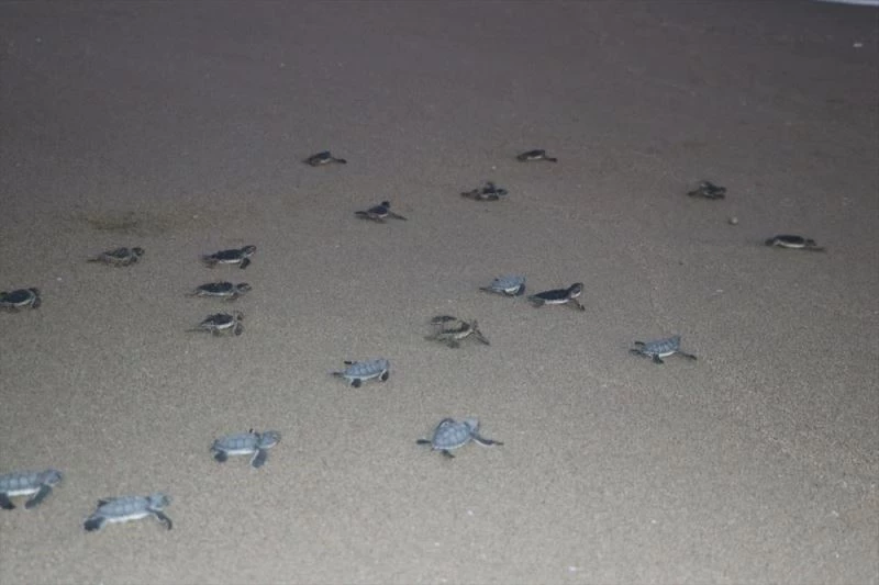 ADANA (AA) - Yesil deniz kaplumbagalarinin önemli yuvalama alanlarindan Adana'nin Karatas ilçesi sahillerinde, kuluçka dönemini tamamlayarak yumurtadan çikan yavrular denizle bulusmaya basladi.