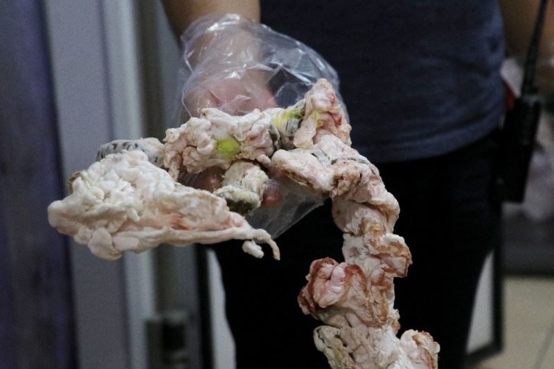 1 tonun üzerinde toplamda et ve sakatat olduğunu belirten Yağmur, “400 kilograma yakın et vardı, 600-700 kilogram da kuyruk yağı, sakatat ve parça yağlar vardı. Ayrıca bağırsağın içerisinden bıçak çıktı. O bağırsağı karıştırırken birisinin eline o bıçak batabilirdi” ifadelerini kullandı.