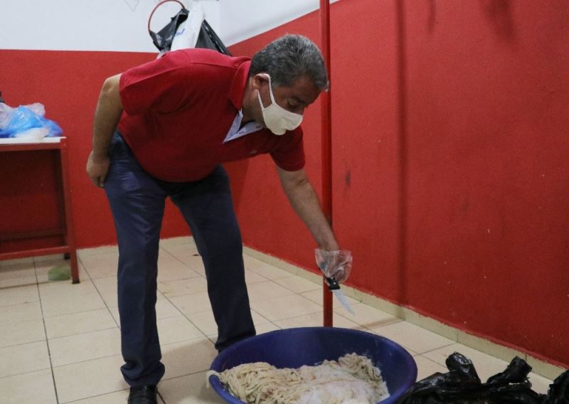 Kasaplara yönelik denetim yapan Adana Kasaplar Odası, Seyhan ilçesine bağlı Mirzaçelebi Mahallesi’nde bir adreste yabancı uyruklu sahte kasap olduğu ihbarını aldı. Adrese baskın yapan ekipler, dondurucu içerisinde 1 tona yakın kokmuş et, sakatat ve kuyruk yağı ele geçirdi.