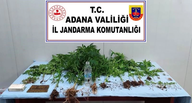 Adana İl Jandarma Komutanlığı ekiplerince, merkez Seyhan ilçesi Karayusuflu Mahallesinde ikamet eden S.Ş. isimli şahsın ikametinde kenevir bitkisi ekimi yaptığı bilgisinin alınması üzerine adli makamlardan alınan karara istinaden arama yapıldı. Aramada 174 kök boyları 3-60 cm arasında değişen kenevir bitkisi, 31 adet uzun namlulu tüfek fişeği, 20 gram kenevir tohumu, 1 adet uyuşturucu kullanım aparatı, 1 gram kubar esrar maddesi ele geçirildi.