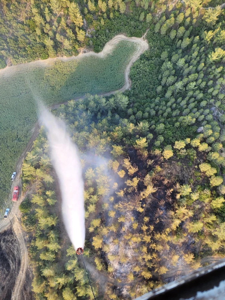 İhbar üzerine bölgeye Orman Bölge Müdürlüğü ekipleri ile söndürme uçağı, helikopter ve arazözler yönlendirildi.