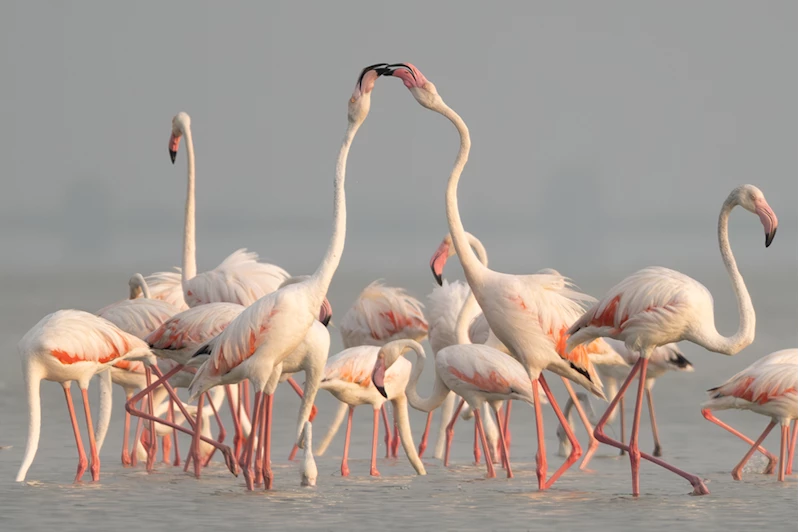 ADANA - Göçmen kuşların mola yerlerinden Adana'nın Karataş ilçesindeki Akyatan Lagünü, flamingolarla hareketlendi.
