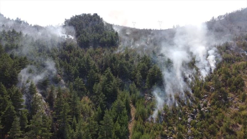Ekipler hava ve karadan yangina müdahale ederken, yangin bölgesi ve yanan alanlar drone ile havadan görüntülendi.