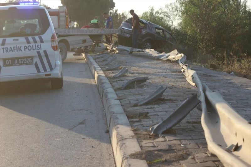Hacı Sabancı Bulvarı üzerinde sürücüsünün ismi öğrenilemeyen 07 CZN 44 plakalı otomobil, demir bariyerlere çarptıktan sonra yol kenarına savruldu.