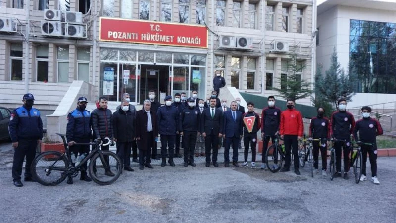 ADANA - Adana'nın düşman işgalinden kurtuluşunun 100. yıl dönümü etkinlikleri kapsamında bisikletli sporcular, "Atatürk'ün Mücahitlerinden Adana'ya" isimli Türk bayrağını Pozantı Kaymakamlığından teslim aldı.