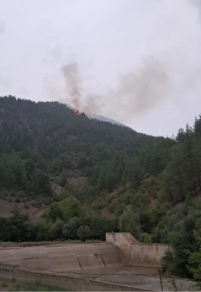 Belenköy Mahallesi yakınındaki ormanlık alanda yıldırım düşmesi sonucu yangın çıktı.