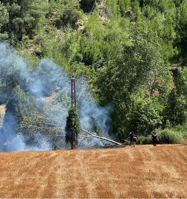 Tellerden yayılan kıvılcımlar nedeniyle ormanlık alanda yangın çıktı.
