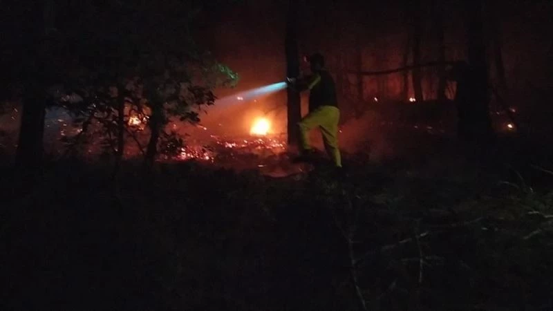 Yaklaşık 1 hektar alanda zarara yol açan yangın bölgesinde soğutma çalışmaları sürüyor.
