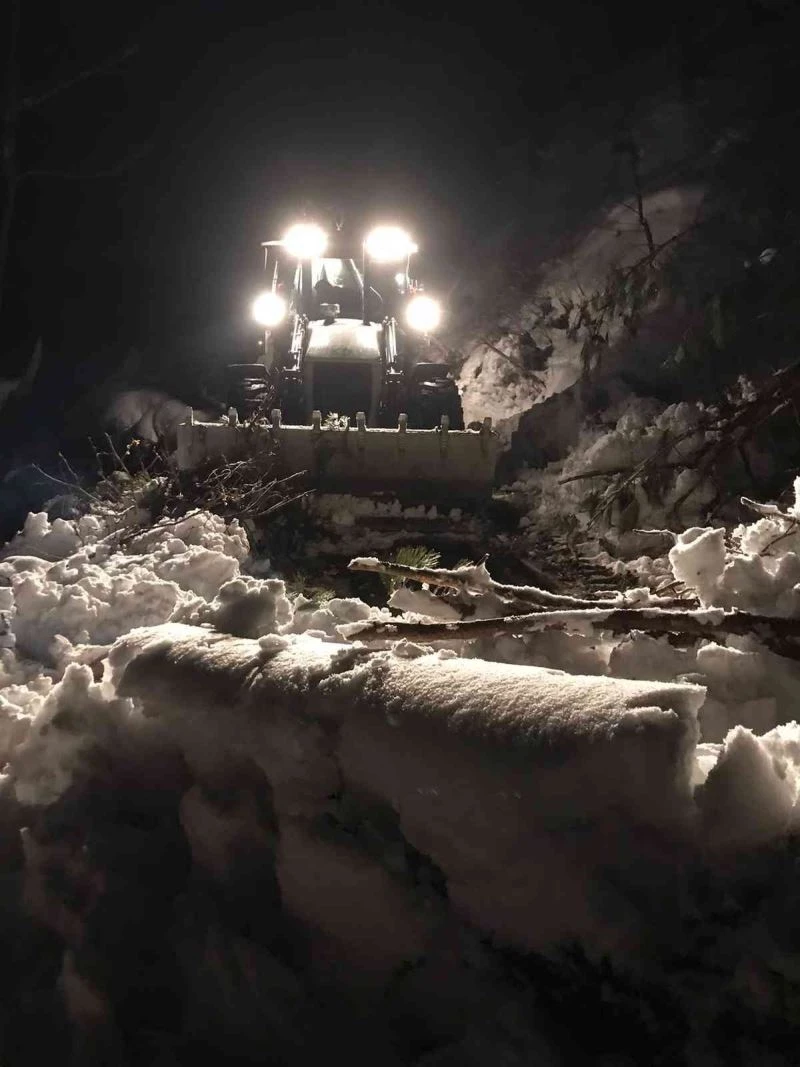 Adana’nın kuzey ilçelerinde etkili olan yoğun tipi ve kar yağışının ardından karla kapanan mahallelerde iş makinalarının yol açma çalışmaları sürüyor.
