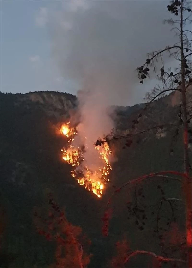 Havanın kararmasıyla ekiplerin gece boyunca karadan müdahaleyi sürdürdüğü yangın, kontrol altına alındı.
