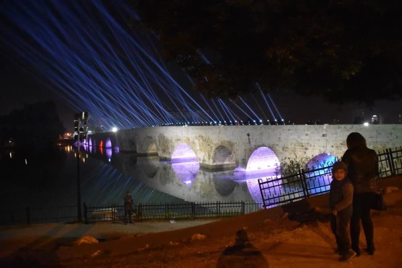 Bu kapsamda, Merkez Seyhan ilçesinde bulunan Tarihi Taş Köprü üzerinde lazer gösterisi düzenlendi.