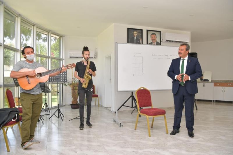 Gençleri müzikle uğraştıkları için kutlayan Başkan Soner Çetin, hayatta isteyip de yapamadığı az şeylerden birinin bir enstrüman çalmak olduğunu açıkladı. Ziyarette gençler Başkan Soner Çetin’e mini bir konser verdi.