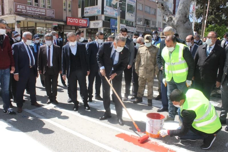 Adıyaman Belediyesi, yayaların geçiş üstünlüğüne dikkat çekmek için İçişleri Bakanlığınca başlatılan kırmızı çizgi uygulaması kapsamında kent merkezindeki ışıksız yaya geçitlerine kırmızı çizgi çekti.