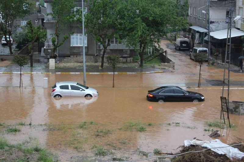 Adıyaman’da, aniden bastıran dolu ve sağanak yağış nedeniyle cadde ile sokaklar sular altında kaldı.