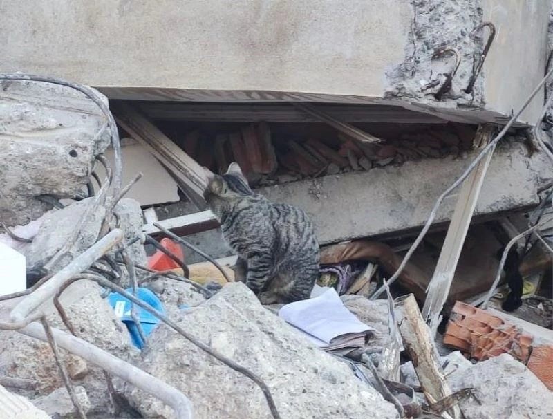 6 Şubat’ta Kahramanmaraş merkezli meydana gelen depremde Gaziantep, Şanlıurfa, Diyarbakır, Adana, Adıyaman, Osmaniye, Hatay, Kilis, Malatya ve Elazığ depremden etkilenen iller olmuştu. Depremin yaraları sarılmaya devam ederken enkaz kaldırma çalışmaları da tüm hızıyla devam ediyor. Adıyaman’ın Karapınar Mahallesi Bağdere Caddesi üzerinde bulunan ve depremden yıkılan bir binanın enkazında 10’a yakın kedinin olduğunu görenler bu durum karşısında hayrette kalıyorlar. Enkazdan bir saniye olsun bile ayrılmayan kediler miyavlayarak enkaz etrafında dolaşıyorlar. Kedileri enkazdan almak isteyen vatandaşlar kedilerin kaçışması sonrası alana, mama ve su bırakmak ile yetiniyorlar. Iğdır’dan deprem bölgesine gönüllü çalışmaya giden Celal Gülten, kedilerin her gün burada miyavlayarak sanki bir şey aradığını belirterek, “Depremden dolayı bu ev bu hale geldi. Burada daha önce 10’a yakın kedi vardı. Burası enkaz olduğu halde kediler burayı terk etmiyor. Herhalde ev sahibi bu kedileri beslediği için gitmiyorlar. Sürekli burada enkazın başında bekliyorlar. Biz bazen burada onlara kedi maması vermeye çalıyoruz. Kedileri bir türlü kurtarmaya çalıştık gelmiyorlar” dedi.