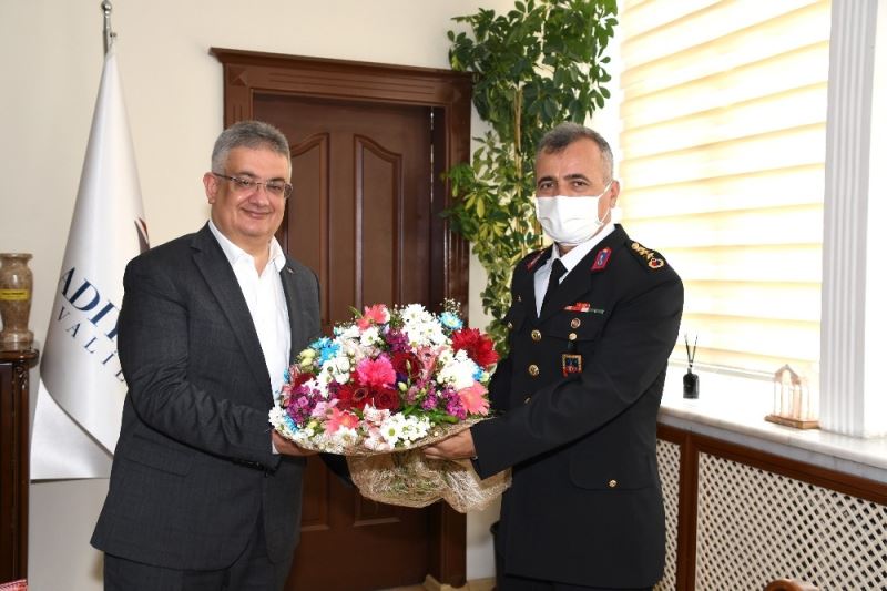 Jandarma teşkilatının 181. kuruluş yıl dönümü dolayısıyla Adıyaman İl Jandarma Komutanı Albay Ercan Atasoy, jandarma personeli ile birlikte Vali Aykut Pekmez’i makamında ziyaret etti.