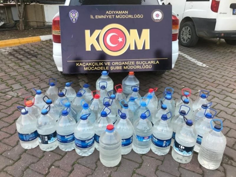 Adıyaman Gölbaşı karayolu üzerinde gerçekleştirilen uygulamada durdurulan bir araç içerisinde yapılan aramada, 225 litre kaçak ve sahte alkol ele geçirildi. Araç sürücüsü şüpheli Y.S. hakkında adli işlem başlatıldı.