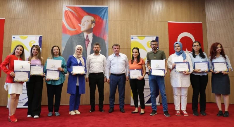 Konuşmalar sonrası ulusal kalite etiketi, Avrupa kalite etiketi ile eTwinning okulu kalite etiketi alan okul yöneticileri ve 75 öğretmene sertifikaları İl Müdürü Ramazan Aşcı tarafından verildi.