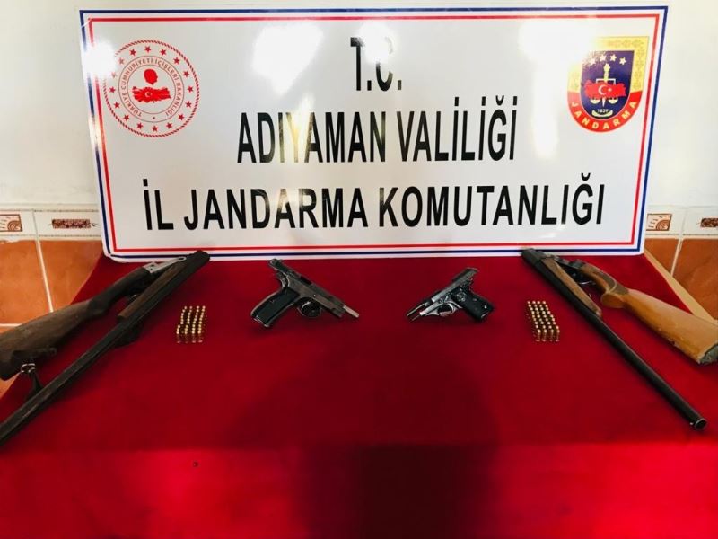 Adıyaman’da jandarma ekipleri bir evde yaptıkları aramada 2 adet tabanca, 2 adet av tüfeği ele geçirdi.