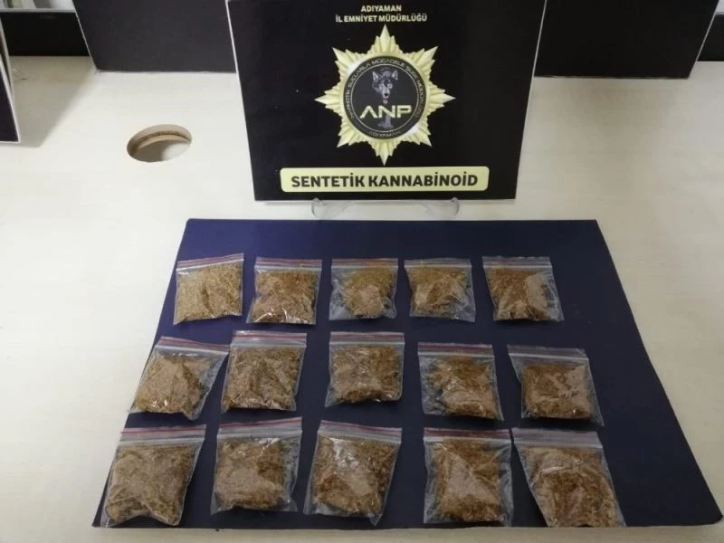 Edinilen bilgilere göre, Narkotik Suçlarla Mücadele Şube Müdürlüğü ekipleri yaptıkları çalışmalar kapsamında U.G., isimli bir şahsın evine operasyon düzenledi. Yapılan operasyonda 15 paket halinde 31,51 gram bonzai maddesi ele geçirildi. Bonzai maddesi muhafaza altına alınırken U.G., gözaltına alındı. Emniyette götürülen ve burada işlemleri tamamlanan şahıs daha sonra Adıyaman Adliyesine sevk edildi.