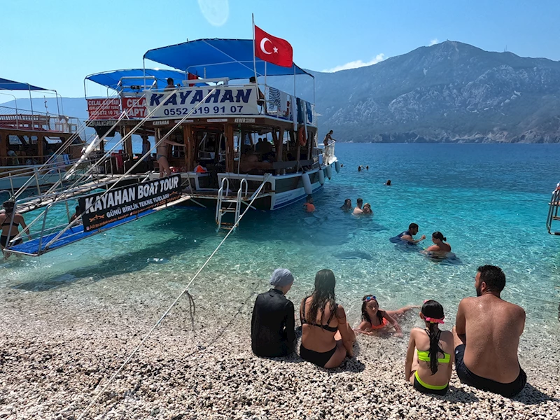 Sabahın erken saatlerinden itibaren günübirlik turlara katılan çok sayıda ziyaretçi, teknelerle koyları gezerek mavi sularda yüzme imkanı buluyor.